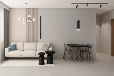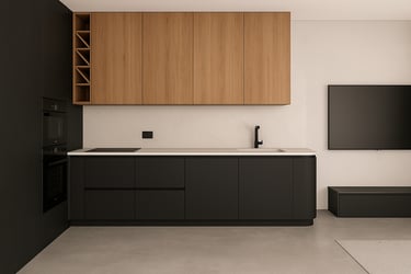 Projekt apartamentu we Wrocławiu został zaprojektowany jako spójna, nowoczesna przestrzeń do życia, w której estetyka idzie w parze z codziennym komfortem i funkcjonalnością. Głównym założeniem było stworzenie wnętrza ponadczasowego, opartego na naturalnych materiałach, spokojnej kolorystyce i starannie zaprojektowanych zabudowach.